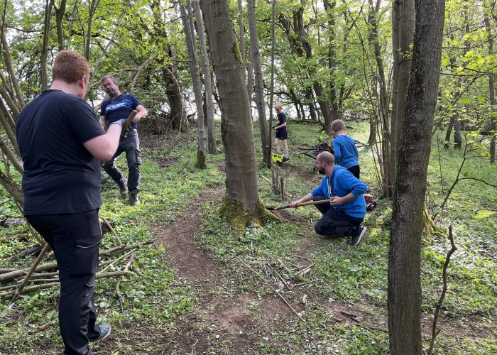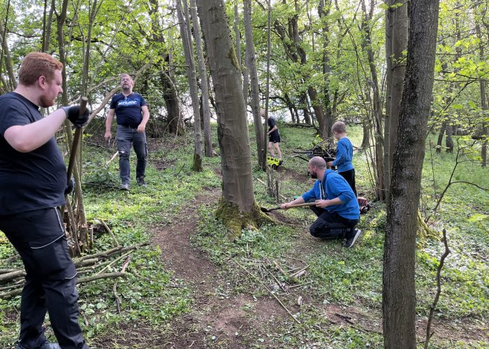 Man merkte es den Mitgliedern förmlich an, wieviel Lust sie dazu hatten, Es wurde gebaut und gleich ausprobiert wie leicht oder schwer das Hindernis war, und dazu ein Foto geschossen. Unseren jüngsten Mitglieder hatten sichtlich Spaß mitzubauen und in der Erde zu wühlen und ebenfalls die neuen Hindernisse auszuprobieren.