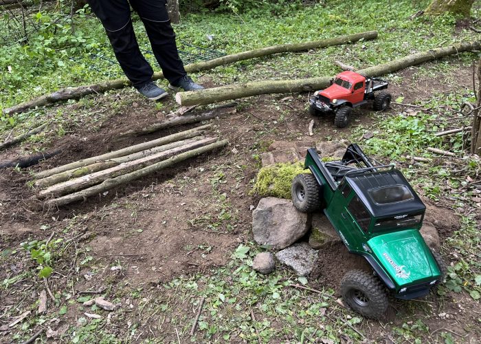 Da einige Mitglieder neben den bekannten 1:8 Buggys auch gerne mit Crawler Fahrzeugen fahren, wurde beschlossen auf dem Vereinsgelände einen Crawler Parcours zu errichten. Zwei Mitglieder hatten schon mehr Erfahrung mir dem Crawlen und konnten hier wertvolle Tips geben und anleiten, wie man das Projekt gut umsetzen kann.