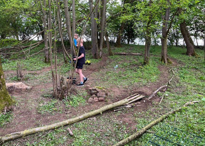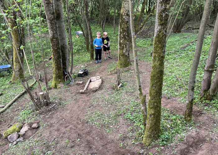 Es war erstaunlich wie schnell der „Bau“ gegangen ist, und man ein fahrbares Ergebnis hatte, unter anderem wurde ein Steinhaufen zum Überfahren gebaut, Engstellen errichtet sowie eine Astbrücke über ein Loch. Weiter konnten wir etwas Beton von alten Curps als Hinderniss nutzen.